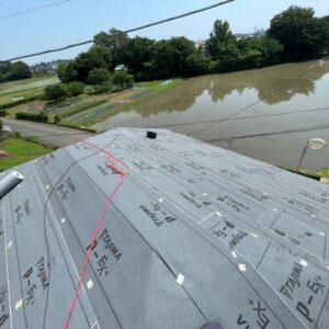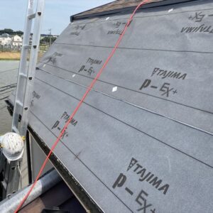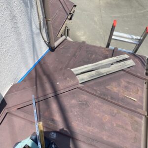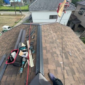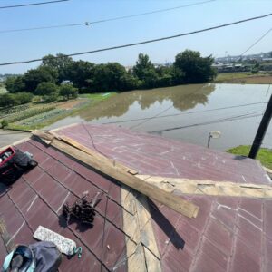大屋根は各役物を撤去した後にルーフィング(防水シート)を敷いていき、下地役物を取り付けていきます。