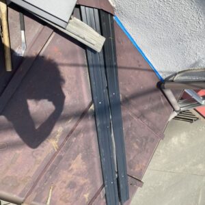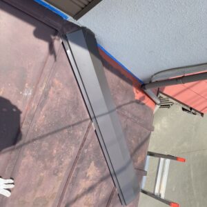 本来、棟は木材を使用した貫板を取付け、棟板金を取付けますが、今回は木材でなく樹脂製の貫板を使用しました。