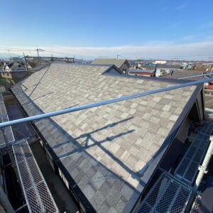 これから、長く住み続けていきたいという願望のもとで、屋根は見えないし雨漏れしてしまってからでは遅いということで今回は、大屋根、下屋根共に上葺き工事を行いました。