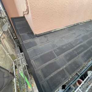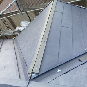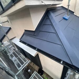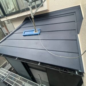 今回は下屋根の1箇所で雨漏れが判明していたので粘着式のルーフィングを使用し雨漏れ箇所を補修し上葺きを行いました。