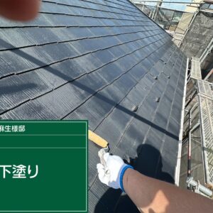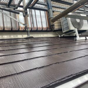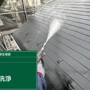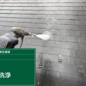 まずは高圧洗浄にて屋根表面の汚れを落とし、塗料がしっかり圧着するように処理していきます。