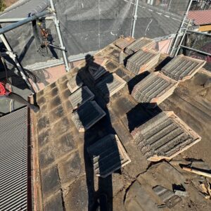 まず、既存の瓦を撤去し、新しい下地の野地板を新設していきます。