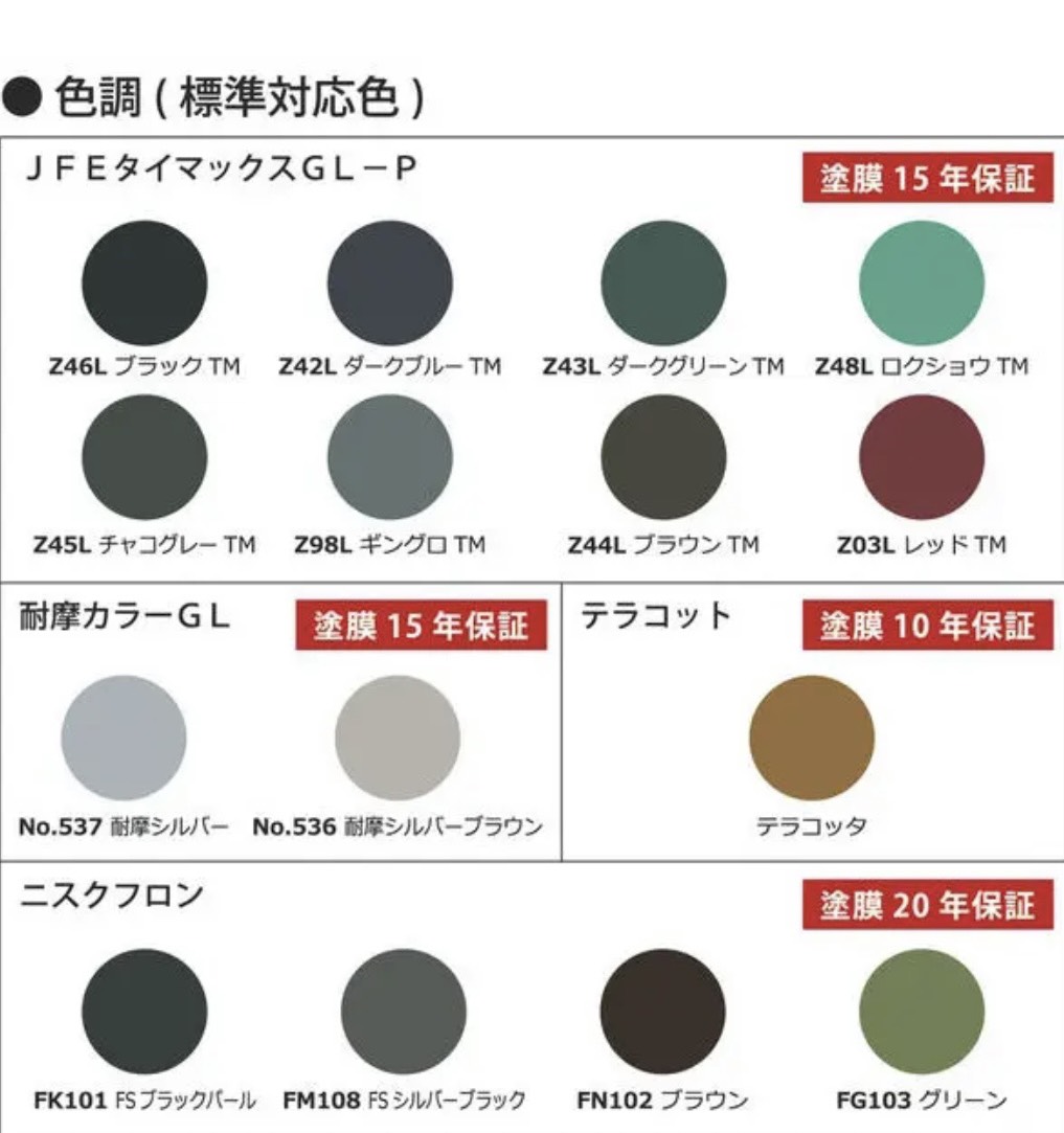 ※基本的にJFEタイマックスGL-Pの色で対応しております。