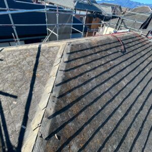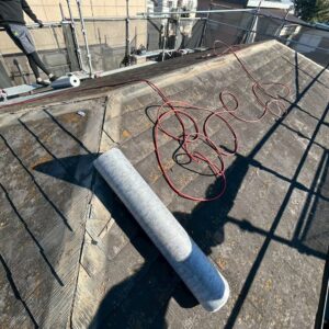 それでは工事の流れに移ります。まず、既存の役物を撤去し、ルーフィング施工と進行します。