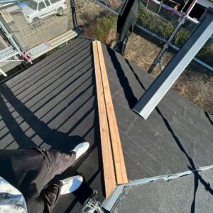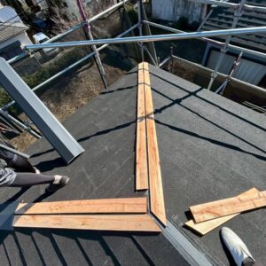 続いて、本体施工とともに棟下地を取り付けていきます。