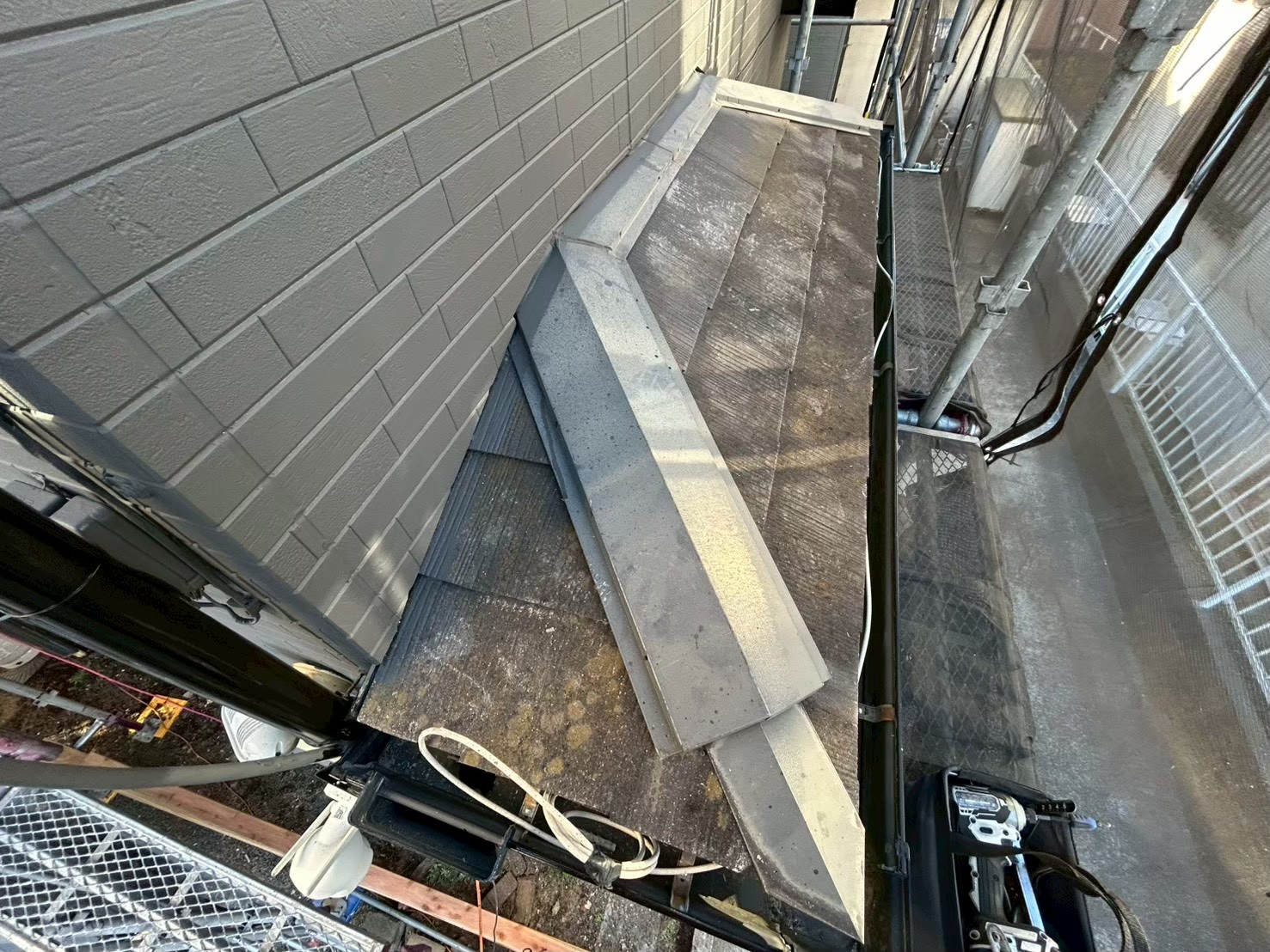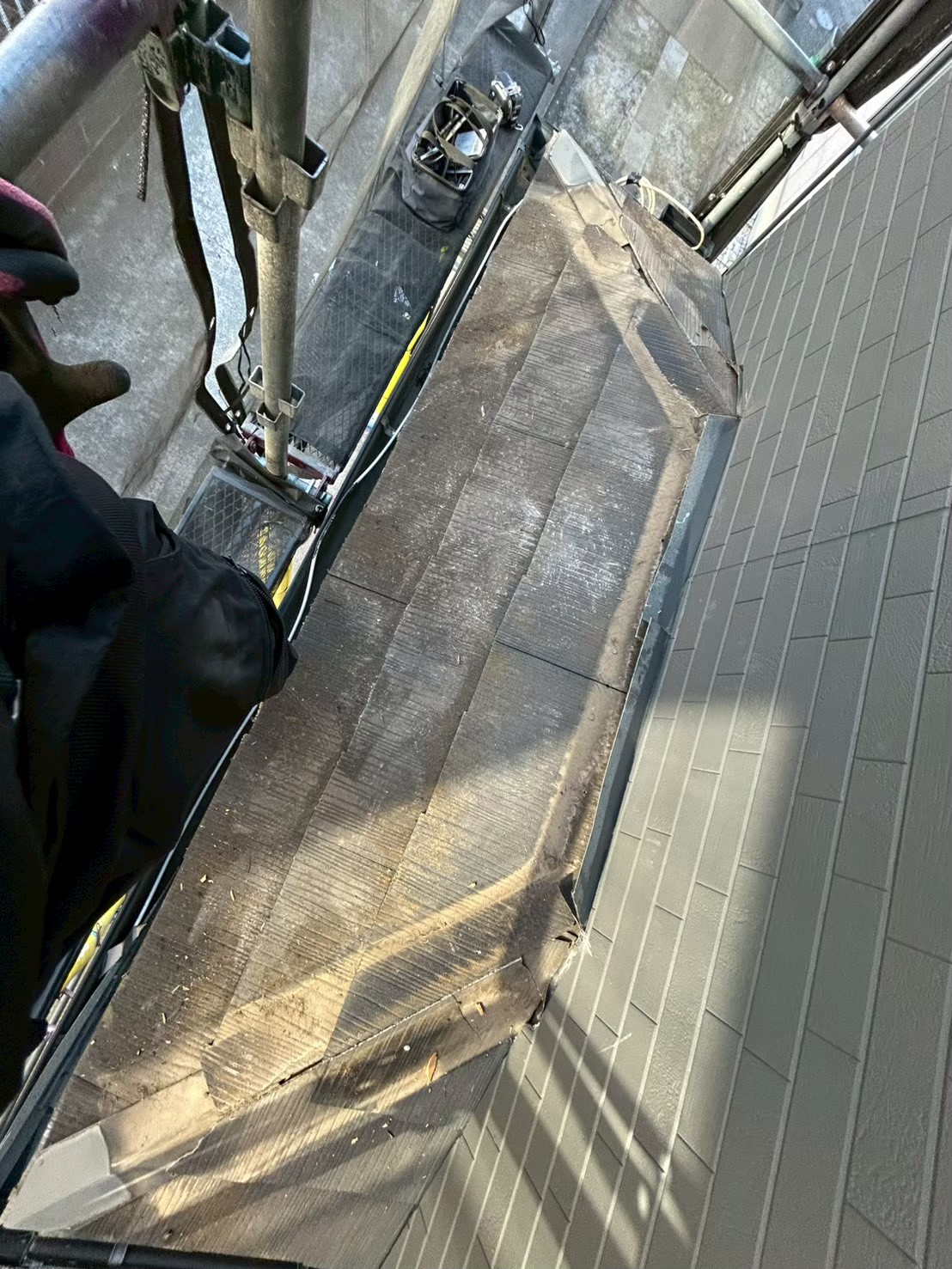 それでは工事の流れに移ります。まず、既存の役物を撤去し、ルーフィング施工と進行します。