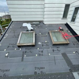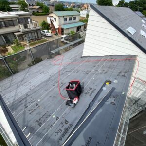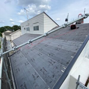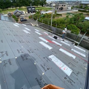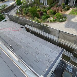 各役物を撤去した後にルーフィング(防水シート)を敷いていき、下地役物を取り付けていきます。