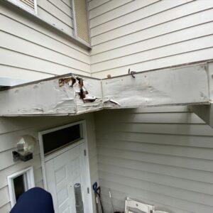 完工したものの、お客様が玄関上の庇の劣化が自宅に帰ってくる度に気になるとのことで…