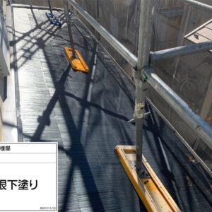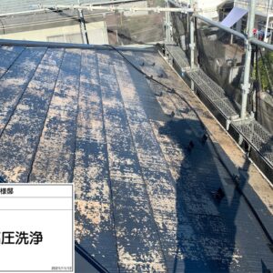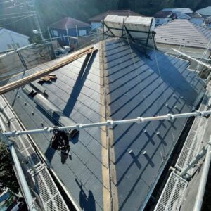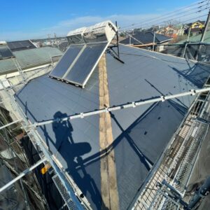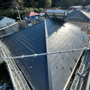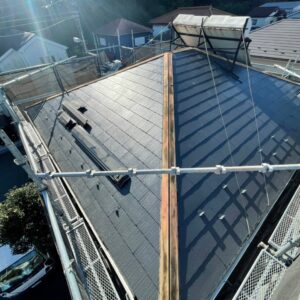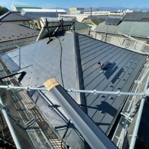 棟板金が下地の劣化に伴い持ち上がってしまっている様子も確認できたので、今回は屋根塗装に加え棟板金の劣化が顕著に現れていた大屋根の棟交換を含めた工事を行いました。